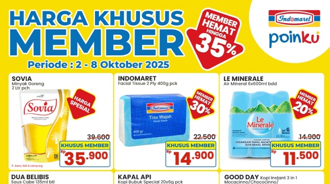 SuaraLampung.id - Indomaret kembali memanjakan para pelanggannya dengan promo spesial yang tidak boleh dilewatkan. Mulai tanggal 2 hingga 8 Oktober 2025, para member setia Indomaret bisa menikmati harga khusus member dengan diskon fantastis hingga 35% untuk berbagai produk pilihan.