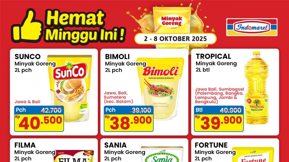 Indomaret kembali hadir dengan promo Hemat Minggu Ini khusus untuk produk minyak goreng kesayangan Anda. Catat tanggalnya baik-baik: periode promo berlangsung mulai 2 hingga 8 Oktober 2025. Ini adalah kesempatan emas untuk melengkapi persediaan minyak goreng di rumah Anda dengan harga yang lebih hemat.