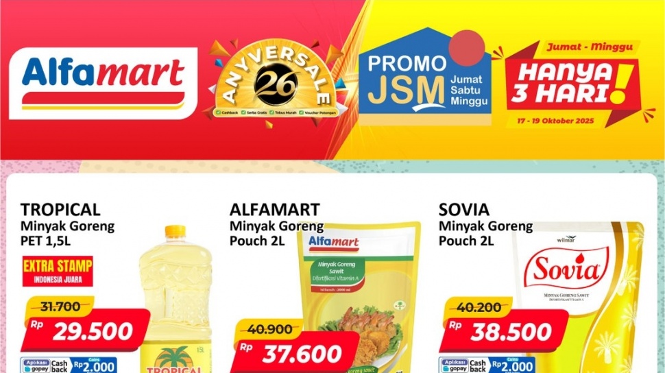 - Alfamart adakan Promo JSM spesial HUT ke-26 dari 17-19 Oktober 2025
