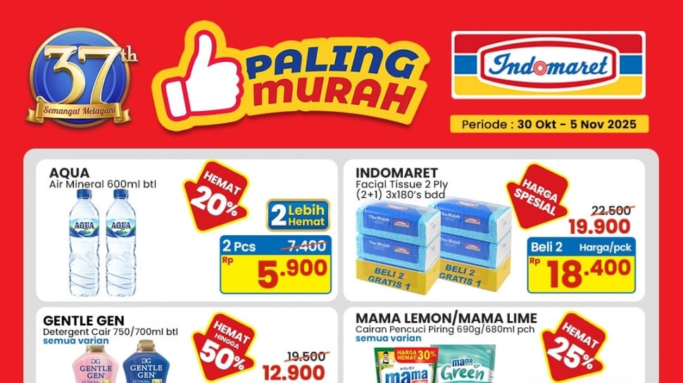 - Promo Paling Murah Indomaret berlangsung dari 30 Oktober hingga 6 November 2025