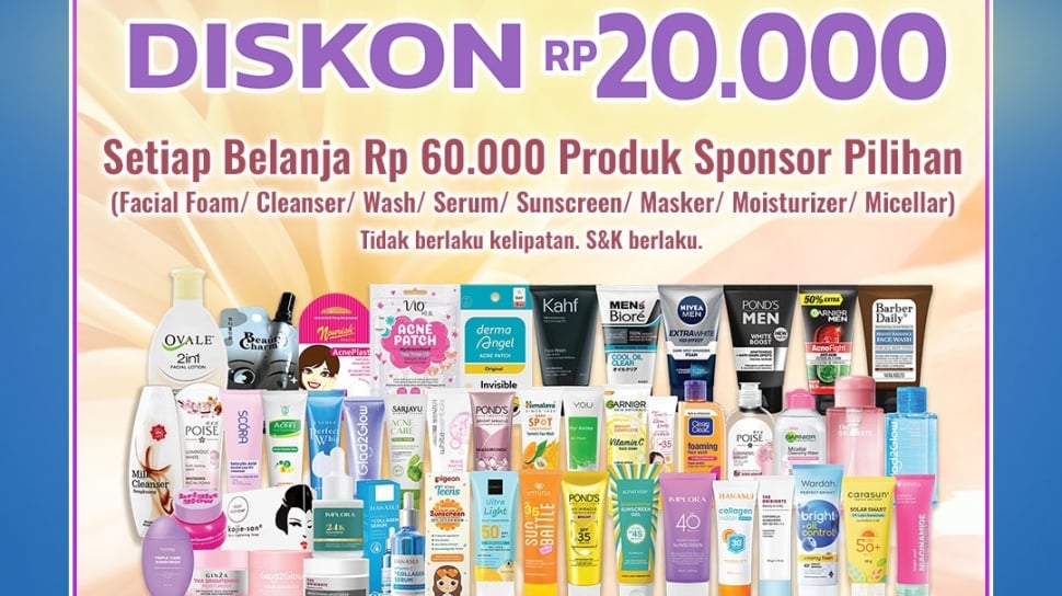 Salah satu highlight yang tak boleh dilewatkan adalah penawaran khusus untuk produk kecantikan. Bagi Anda para beauty enthusiast, ada diskon Rp20.000 setiap belanja minimal Rp60.000 untuk produk sponsor pilihan seperti facial foam, cleanser, wash, serum, dan sunscreen.