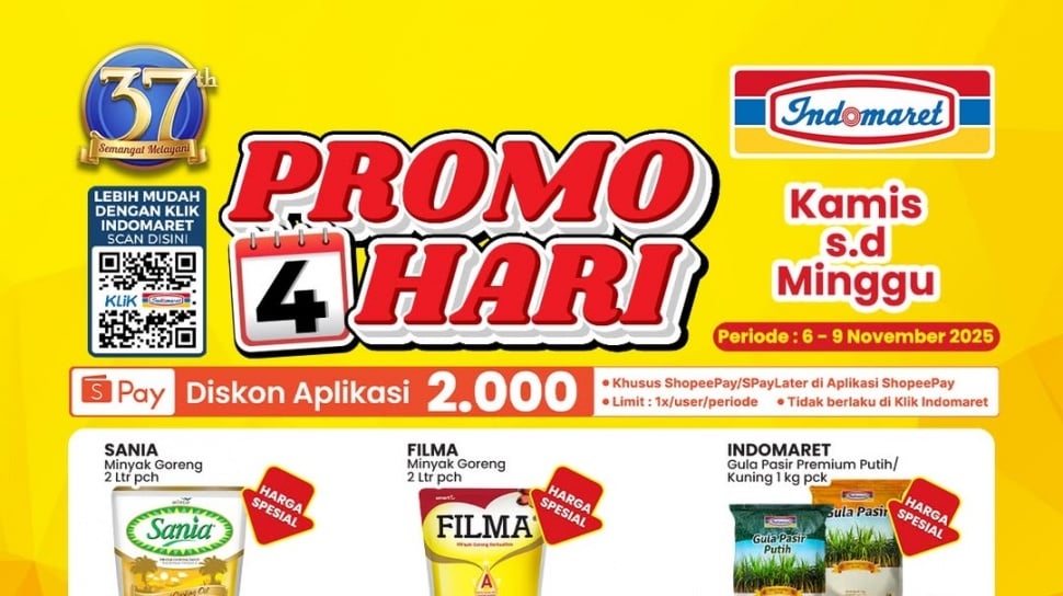 Promo 4 Hari Indomaret ini akan dimulai dari tanggal 6 hingga 9 November 2025. Hanya ada empat hari untuk menyerbu promo menarik ini.
