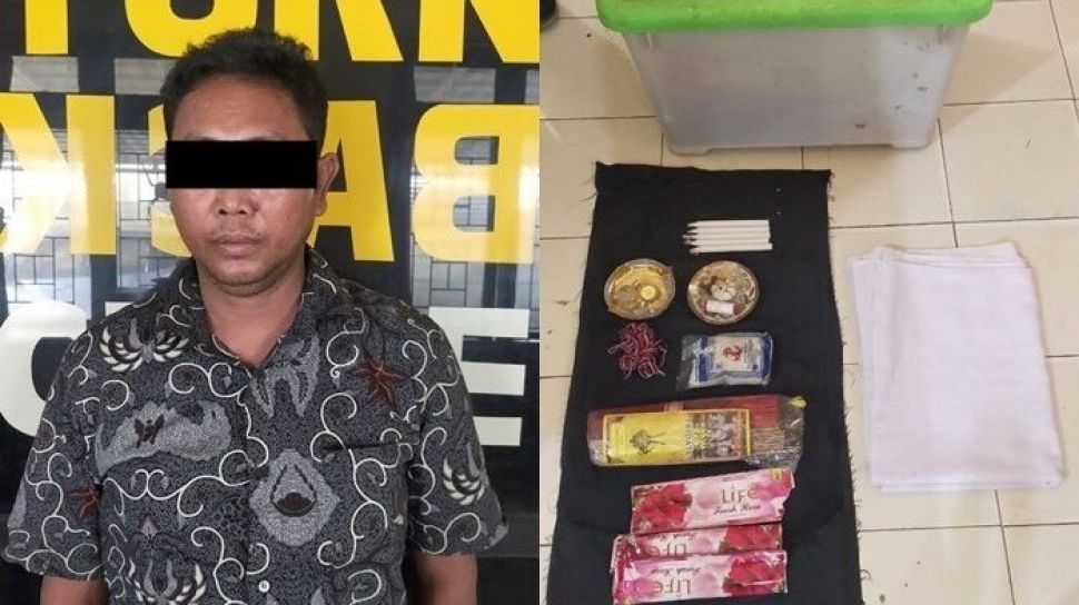 Barang bukti yang disita berupa dua minyak Fanbo, satu lembar kain putih panjang 4 Meter, satu gulung benang tiga warna, dan satu bungkus dupa merk tridatu.