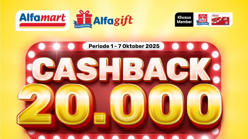 SuaraLampung.id - Alfamart dan Alfagift kembali memanjakan para pelanggannya dengan promo cashback yang bikin hepi. Kali ini, Anda berkesempatan mendapatkan cashback 2X lebih besar, langsung Rp20.000, tanpa ribet dan prosesnya sat set. Jangan lewatkan kesempatan emas ini yang hanya berlaku dari tanggal 1 hingga 7 Oktober 2025.