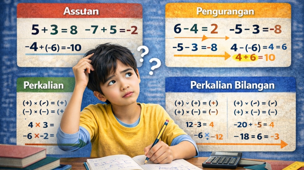 Agar tidak keliru lagi, berikut panduan operasi hitung bilangan bulat (positif dan negatif) lengkap dengan contoh soal yang sering muncul di kelas dan ujian.