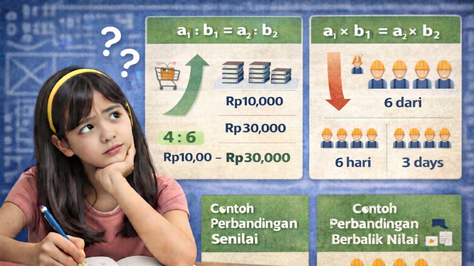 Agar tidak tertukar lagi, berikut panduan cara menghitung perbandingan senilai dan berbalik nilai, lengkap dengan pengertian, rumus, dan contoh yang sering muncul di soal.