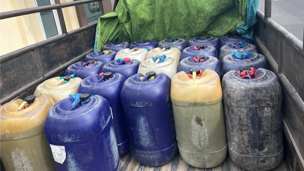Sebanyak 33 jeriken kosong lainnya turut ditemukan, siap untuk diisi dengan "ramuan" ilegal buatan kedua warga Lampung Tengah tersebut.